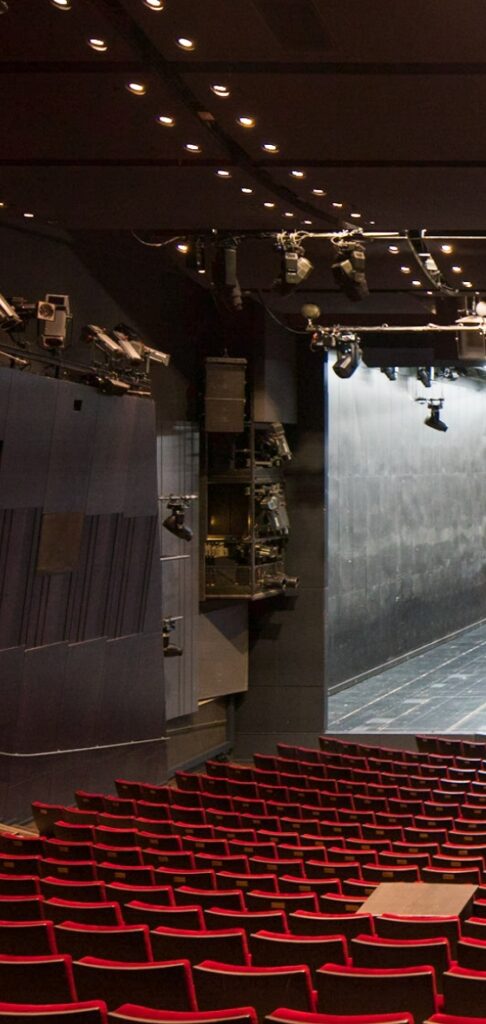 Mit neuen Spielstätten entsteht die Chance, Offenheit, Austausch und Interaktion räumlich zu befördern. Flexible kleinere Bühnenräume – z.B. Werkraumbühne und Multifunktionsräume (links) – ermöglichen neue Aufführungs- und Veranstaltungsformate.